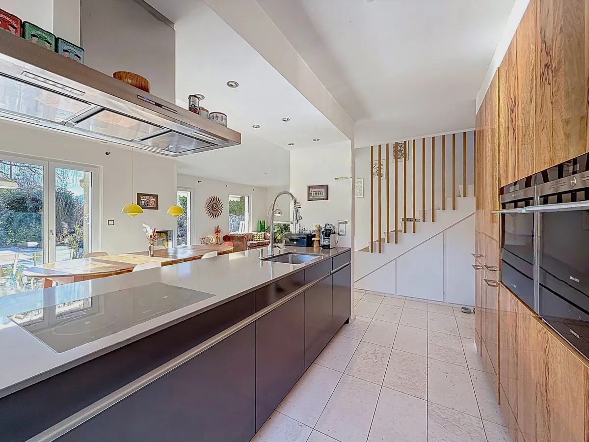 Un soin tout particulier a été apporté aux aménagements extérieurs avec une belle terrasse ainsi qu’un magnifique jardin privatif plat et arborisé : un atout de taille pour cet objet d’exception qui vous permettra de prolonger vos soirées en famille ou entre amis.
